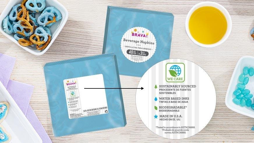 • Manufacturing napkins made with paper certified as sustainable by the Forest Stewardship Council (FSC). The FSC provides independent assurance that wood and wood-derived products like paper, support forests managed to the highest standards.